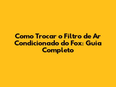 Como Trocar O Filtro De Ar Condicionado Do Fox: Guia Completo