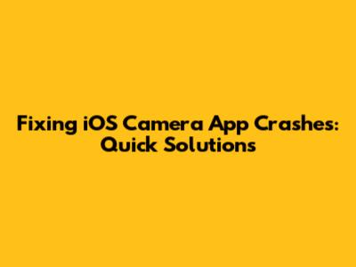 Fixing IOS Camera App Crashes: Quick Solutions